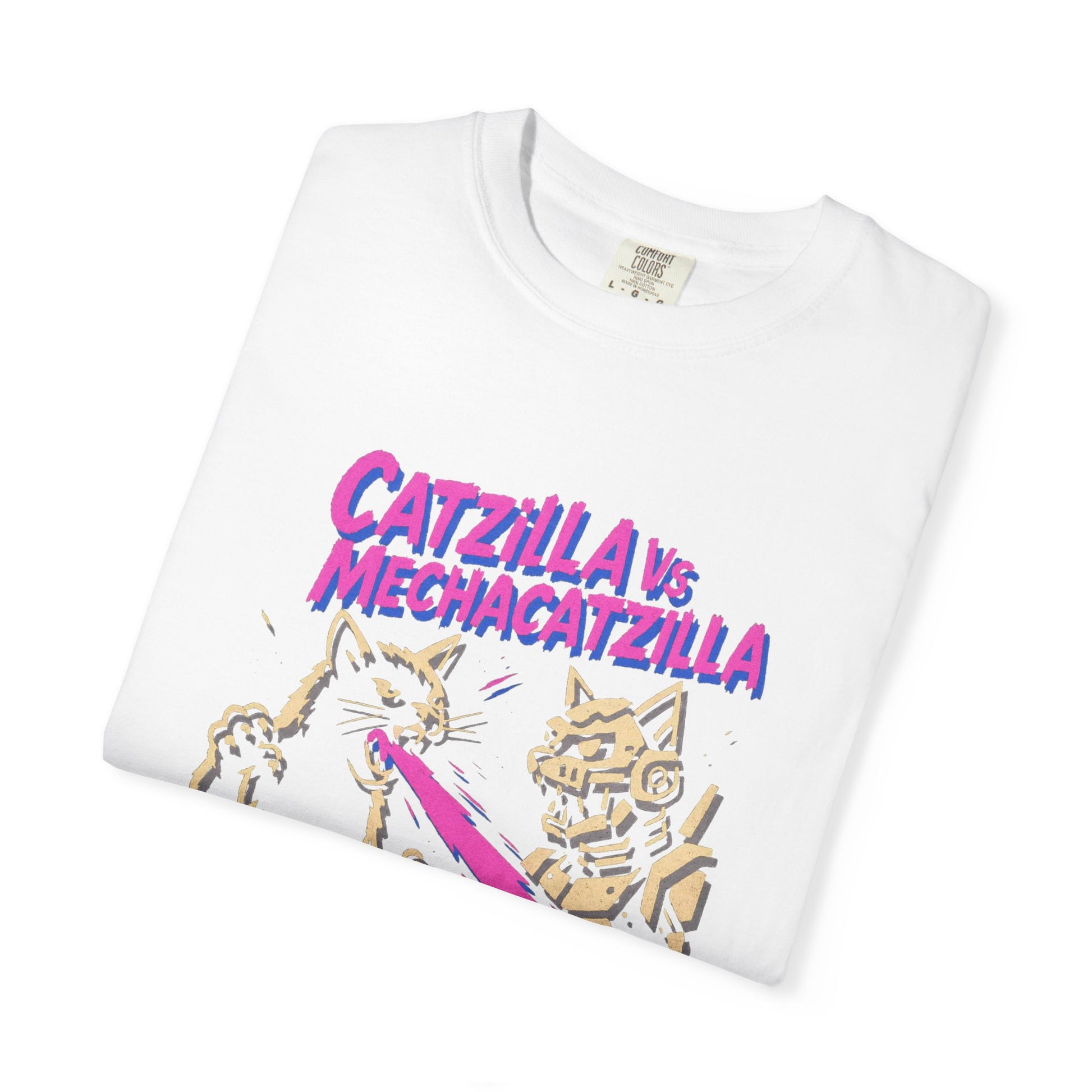 This “Catzilla vs MechaCatzilla” tee amps up your fit with a hot-pink and acid-green poster graphic—complete with laser breath, city ruins, and Tokyo tower—printed on a super-soft Comfort Colors® garment-dyed shirt that feels broken-in from day one.